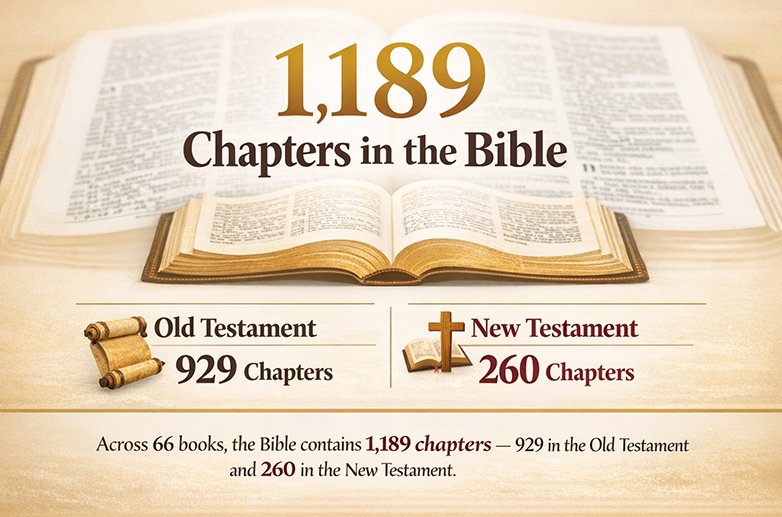 The Bible is composed of 66 books, and the total number of chapters is 1,189. This chapter count might differ slightly in different Christian denominations, but for most people following the Protestant Bible, this is the standard.
